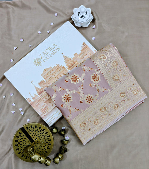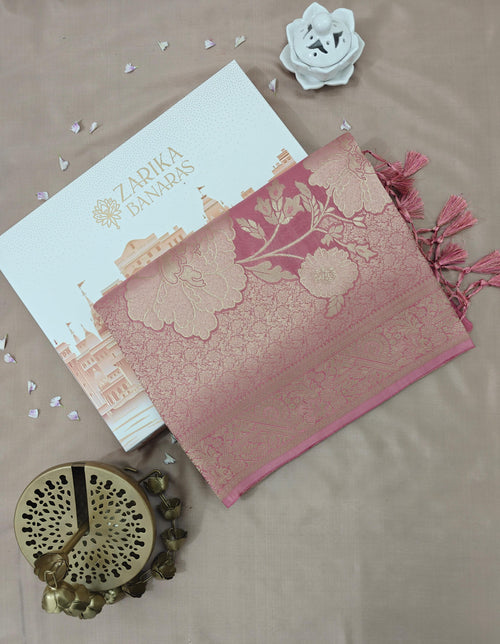 Baby Pink Silk Saree with Dark Floral Jaal -